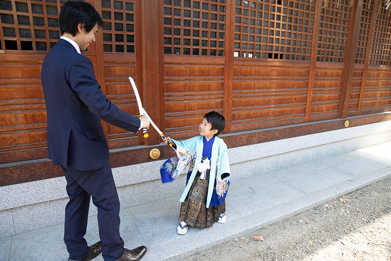 - スタジオ撮影+御祈祷中撮影+神社内撮影(和傘・刀などアイテム充実)
